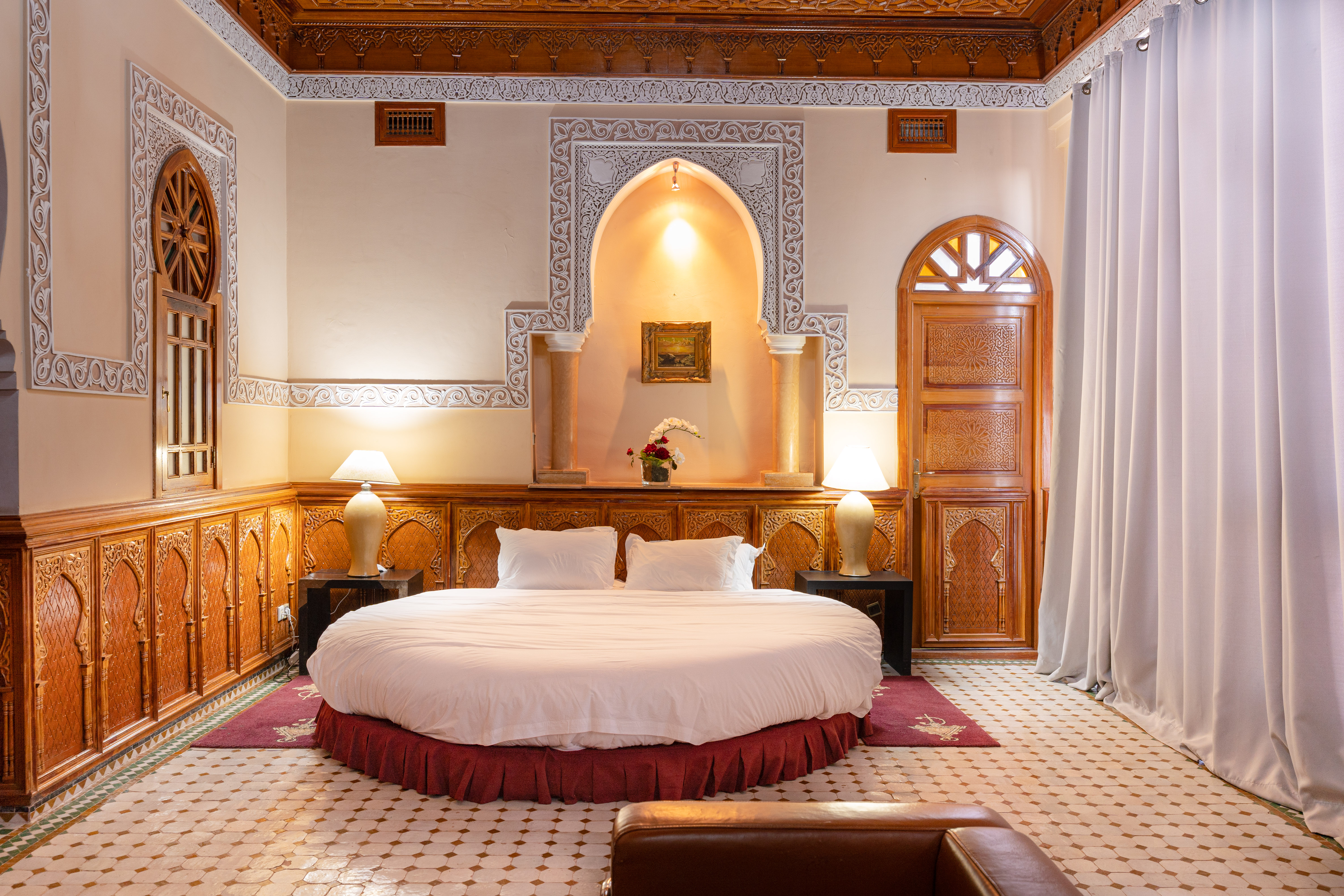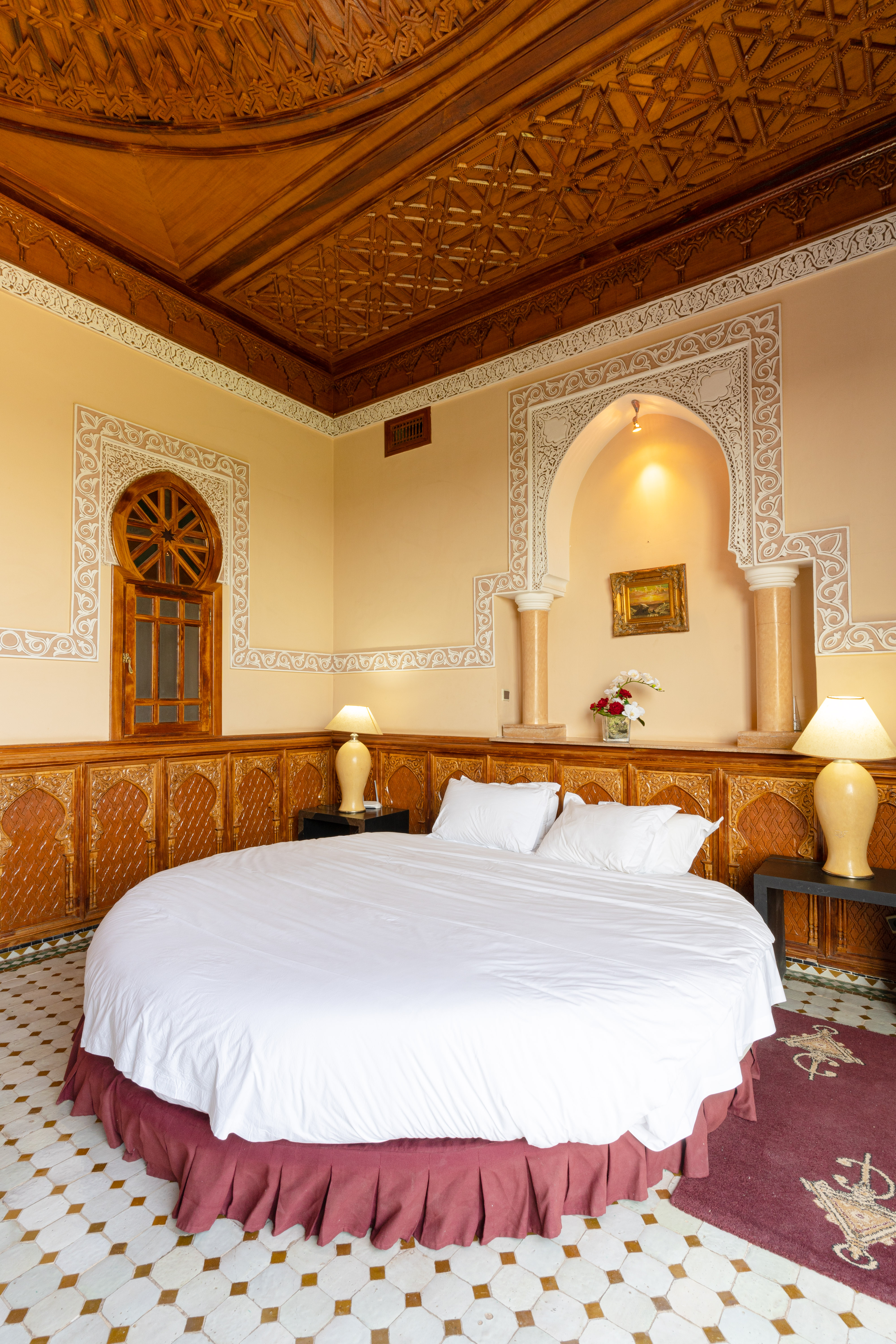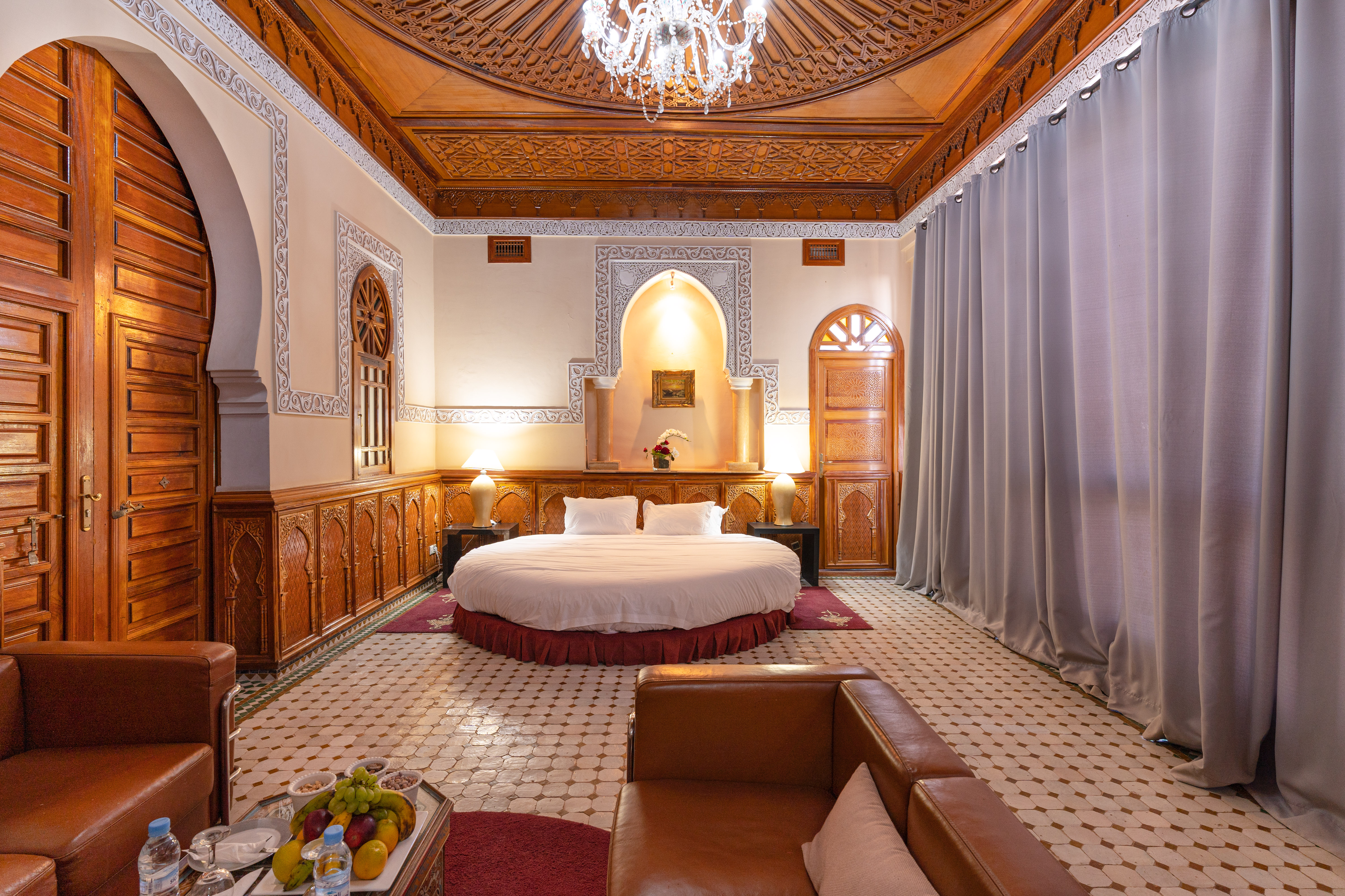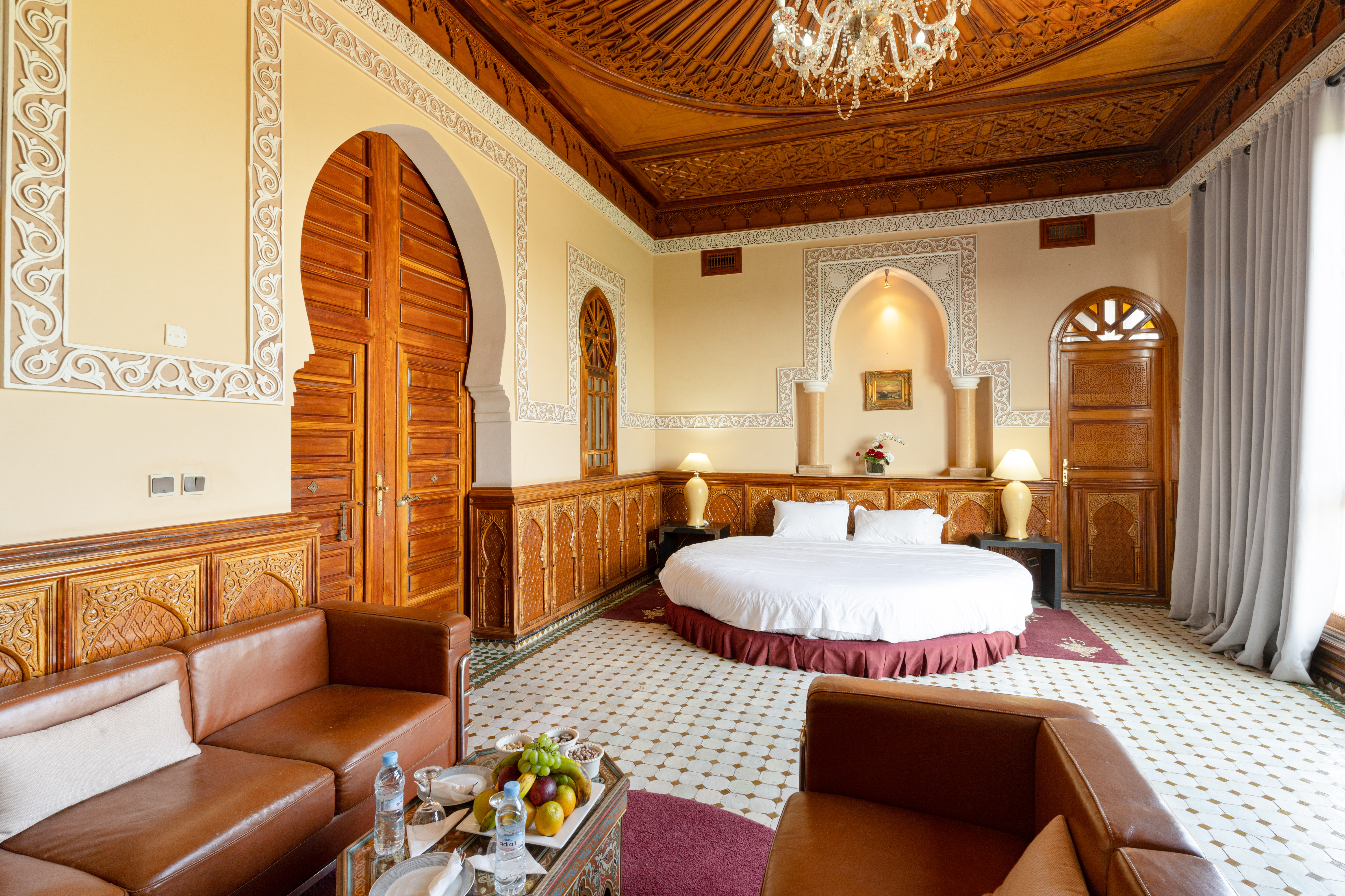 • Salon: An expansive salon with a unique round bed, set against the stunning panoramic backdrop of the Atlas.
